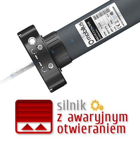 Do głowicy silnika montuje się specjalne ucho (znajdujące się w zestawie). Przez skrzynkę rolety wyprowadza się je na zewnątrz lub do wewnątrz pomieszczenia. W przypadku awarii prądu wystarczy zahaczyć o to ucho korbę z hakiem i ręcznie, kręcąc, podnieść lub opuścić pancerz. Proces ten nie rozprogramowuje ustawień krańcowych silnika!